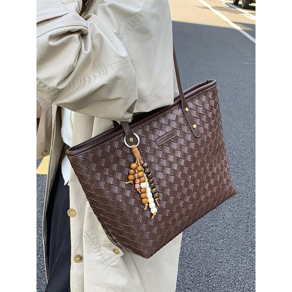High-end Commuting Retro Bag Women's 2025 New Fashion Woven Pattern Shoulder Bag Large Capacity Hand-to-hand Tote Bag
