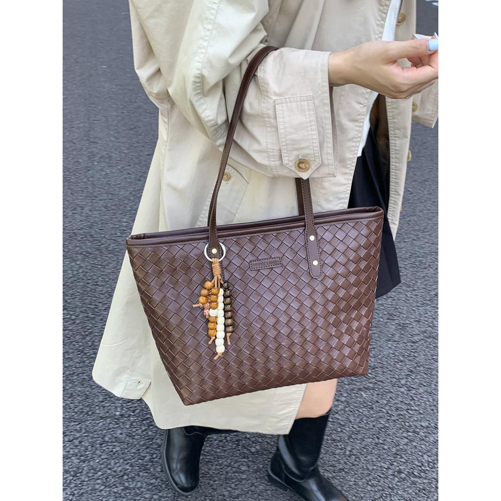 High-end Commuting Retro Bag Women's 2025 New Fashion Woven Pattern Shoulder Bag Large Capacity Hand-to-hand Tote Bag