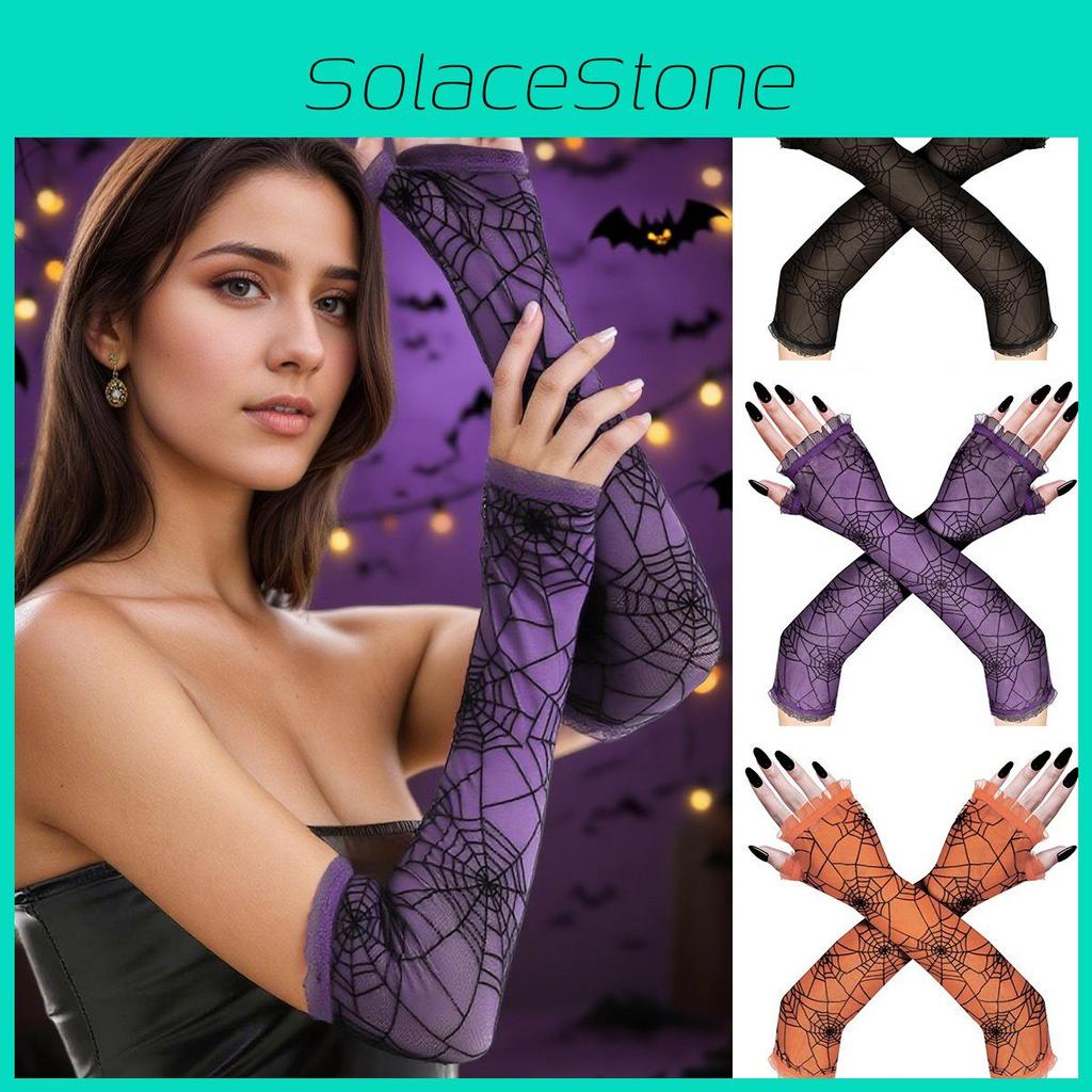 Long Costumes Halloween Gloves Spider Web Design Cosplay Party Decorations
