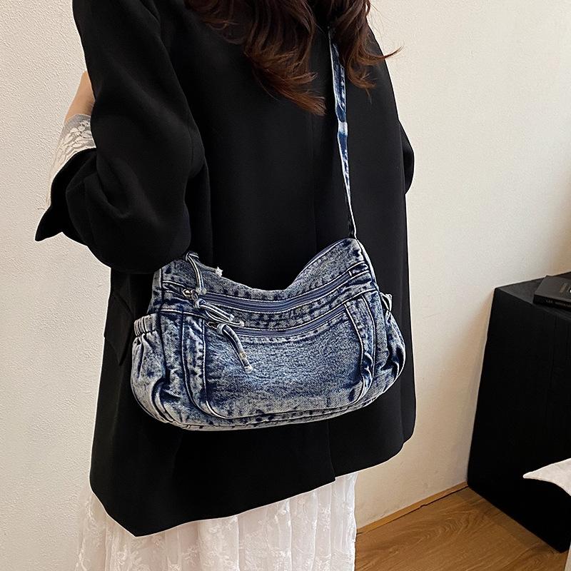 Retro Denim Bag Women's New Fashion Commuter Tote Bag Casual Simple Large Capacity One-shoulder Crossbody Bag Trend