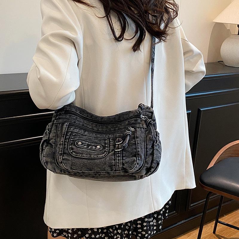Vintage Washed Denim Bag Multi-pocket Commuter Practical Shoulder Messenger Bag Tote Bag 2025 New Bag