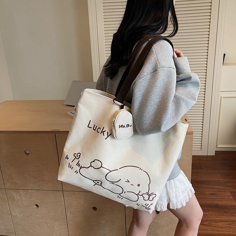 Commuting Large-capacity Japanese Cartoon Shoulder Bag 2025 Autumn New Fashionable Simple Small Fresh Canvas Tote Bag