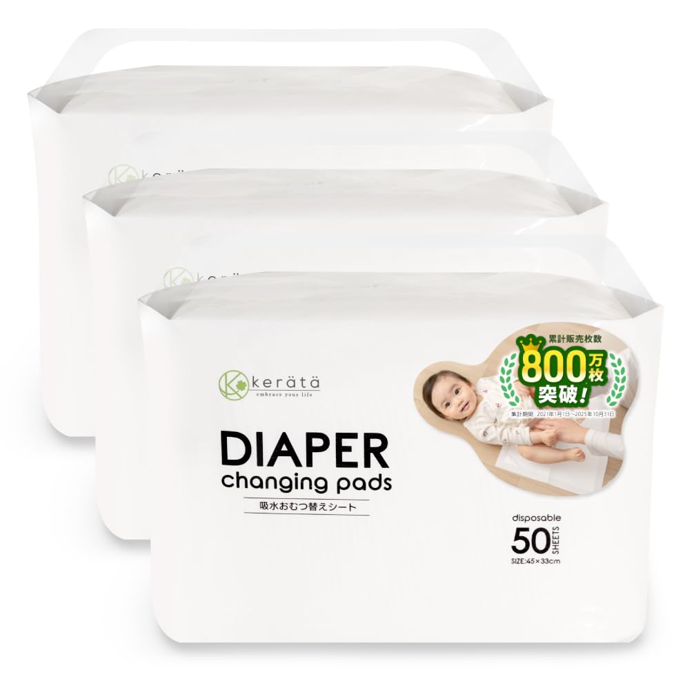 Keratta Disposable Absorbent Waterproof Diaper Changing Pads, 150ml Absorbency, 50 Sheets, White, Approx. 45 X 33cm (50 Sheets (x 3))