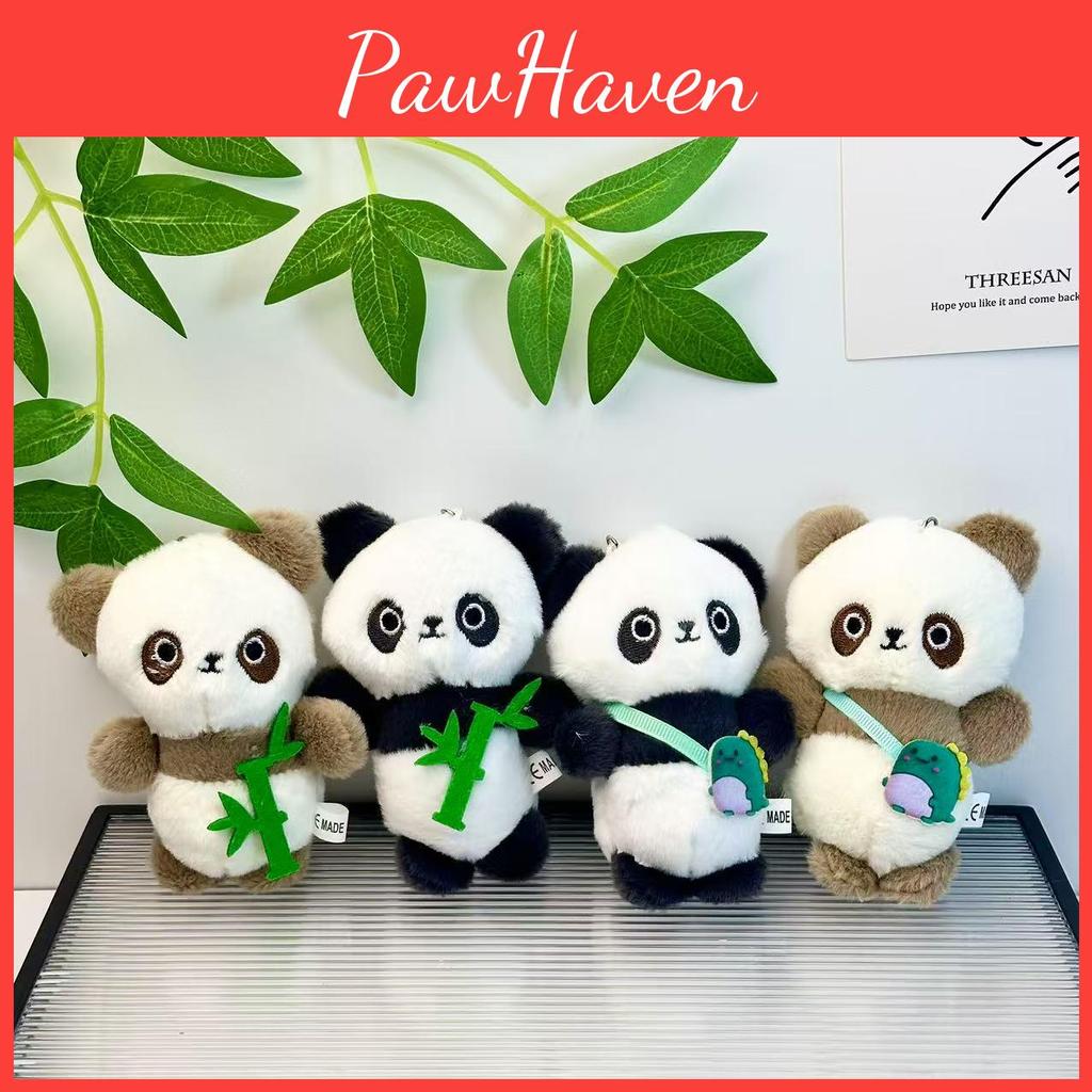 Measuring 11cm, this keychain is perfectly sized to accompany you wherever you go, whether it's attached to your backpack, set of keys, or handbag. Crafted from ultra-soft short pile plush, this panda keychain is not only visually appealing but also provides a tactile experience that's bound to evoke smiles and warmth.With options in colors like Black-Grey Bamboo, Black-Grey Backpack, Brown Bamboo, and Brown Backpack, you can choose a style that resonates with your personality or mood.
