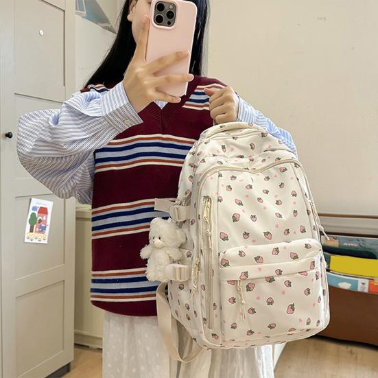 Perfect Size: The fruit printed backpack measures 43cm*30cm*18cm, with a zipper closure and adorable bear pendants, offering ample space while meeting your style needs effortlessly.