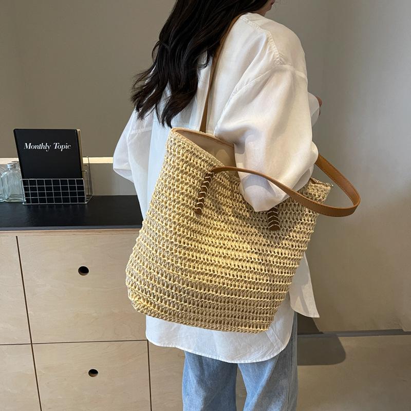 Niche Design Casual Foreign Style Bag Women's 2025 New Spring Fashion Large-capacity Commuter Straw Bag Tote Bag