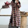 Johnature Women Plaid Dress V-Neck Long Sleeve Vintage Button Clothes Summer Chinese Style Loose Casual Dresses