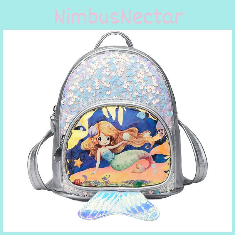 Mermaid With Glitter Small Tail Childrens Backpack Adjustable Shoulder Straps