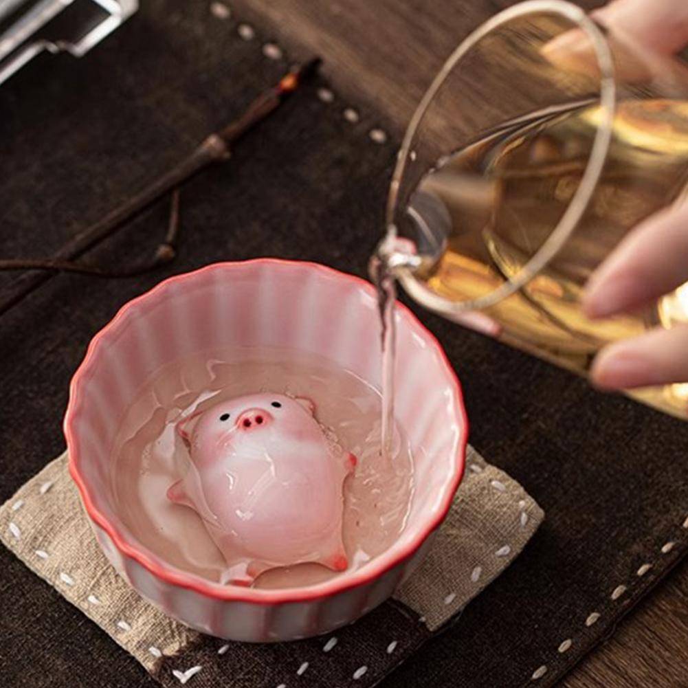 Bubble-Blowing Pig Tea Pet Celadon Glaze Teacup Creative Gongfu Tea Set Ceramic Novelty Porcelain Incense Cup Unique Gift