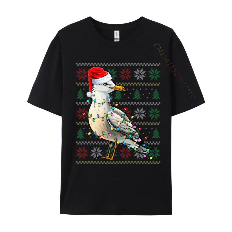 Seagull Wearing Santa Hat Xmas Lights Seagull Christmas T Shirt Funny Homme T-Shirt Pure Cotton Sweatshirt Oversized