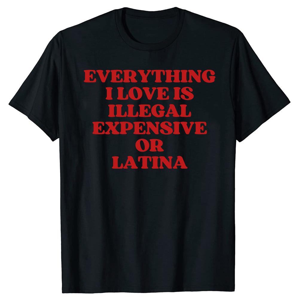Funny Everything I Love Is Illegal Expensive Or Latina T Shirts Humor Streetwear Tee Shirt Short Sleeve Unisex Loose Clothing
