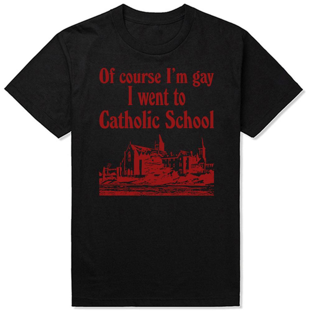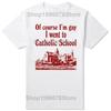 Funny Of Course I'M Gay I Went To Catholic School T-Shirt Men Fashion T Shirts Cotton Short Sleeve Oversized Loose T-shirt Tops