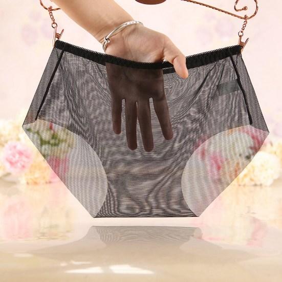 Women Panties Seamless Mid Waist High Elasticity Thin See-through Transparent Ice Silk Breathable Anti-septic Lady Underpants Briefs