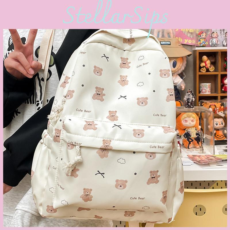 Butterfly Simple Bow And Cartoon Bear Pattern Student Backpack Teens For