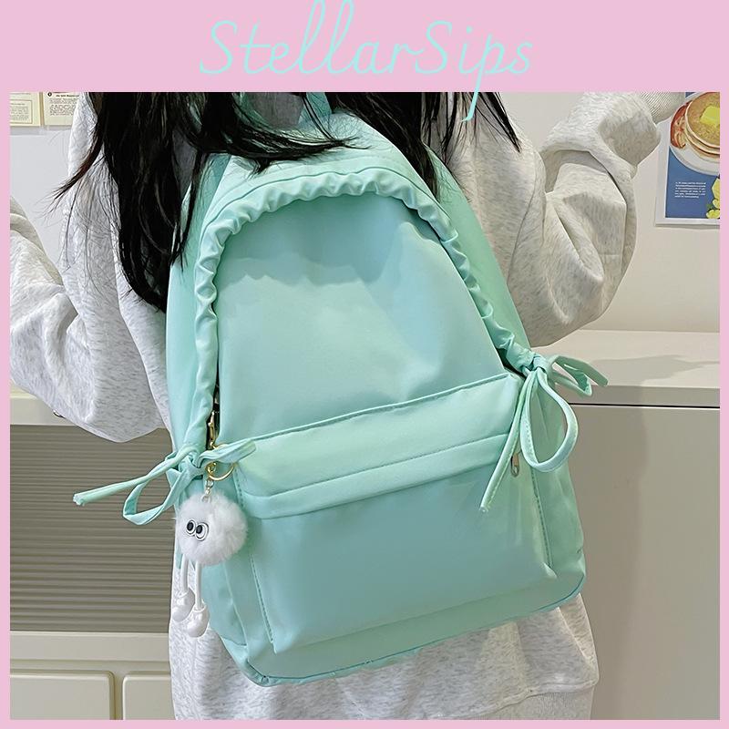 Simple Solid Color Lace Bow Design Student Backpack For School And Daily Use