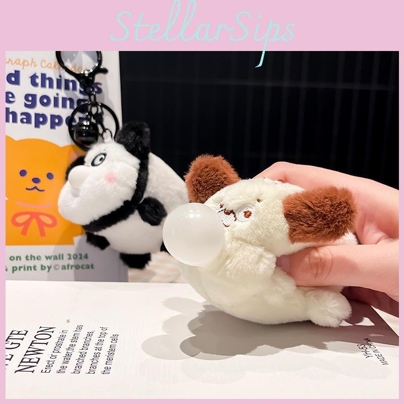 Chick Panda Pig Puppy Blow Bubbles Plush Keychain Function Kids Accessories Gift