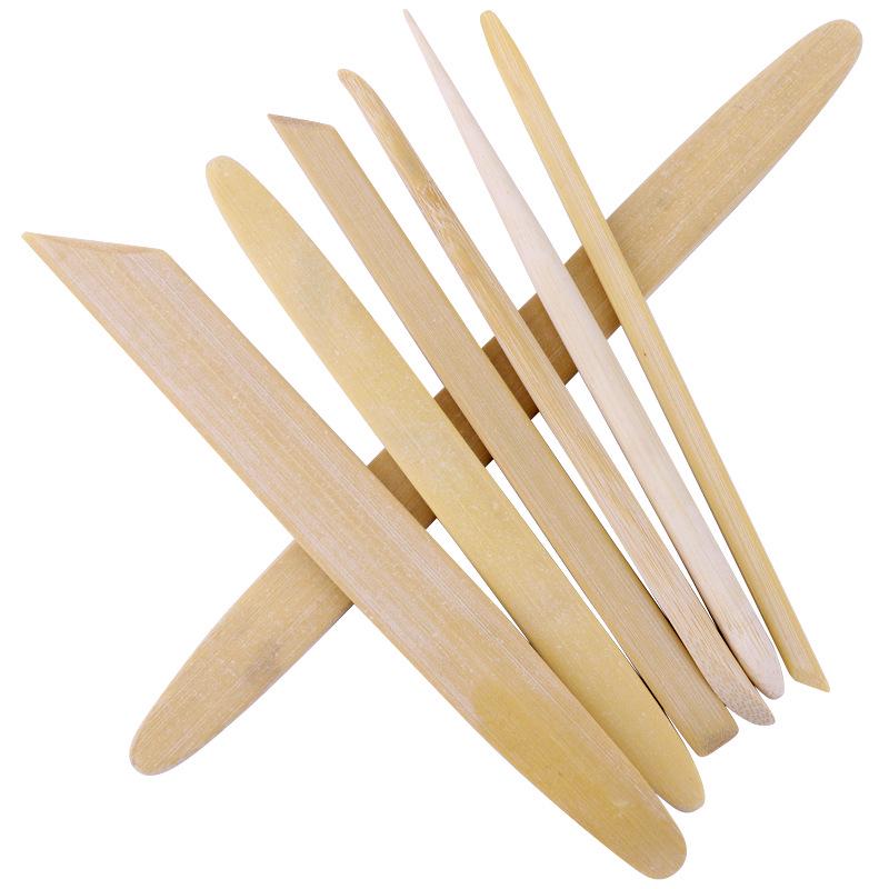 Bamboo Clay Sculpture Set: 7-Piece Round Head Scraper Tools for Buddha Statue Carving and Pottery Craft Trimming.