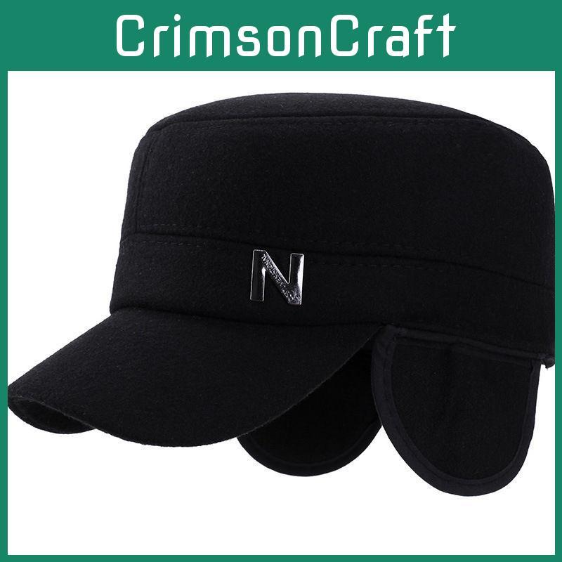 N Middle Letters Aged Elderly Hat Autumn With Thick Wool Windproof Warm Flat Top