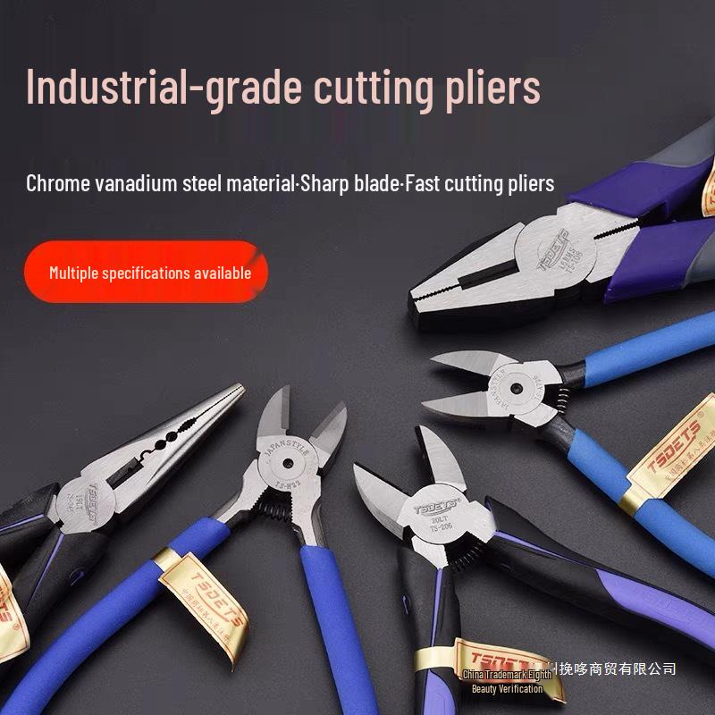 TSDETS Sprue Pliers Set: Includes 6" Side Cutting, 5" Diagonal Cutting, and 7" Wire Cutting Pliers for Plastic and Electrical Work.