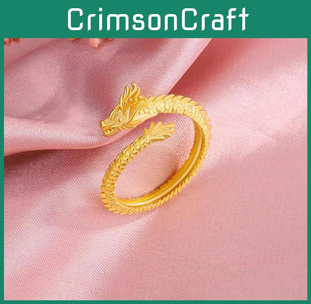 Plated Gold Elegant Dragon And Phoenix Open Ring For Couples In Stylish Design