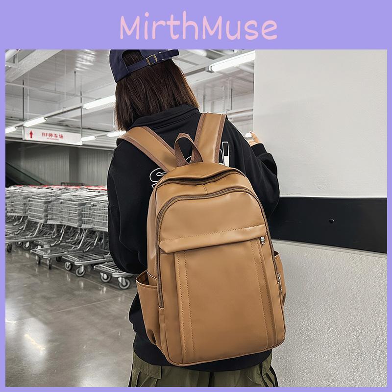 Backpack Unisex Solid Color Pu Material With Padded Straps For School And Trips