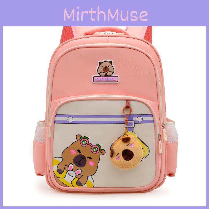 This lightweight kids' backpack features a colorful cartoon capybara design made from durable nylon material, includes breathable padded shoulder straps for comfort. Designed to support school activities, it offers ample storage for daily essentials. Wipe clean with a damp cloth to maintain its appearance.