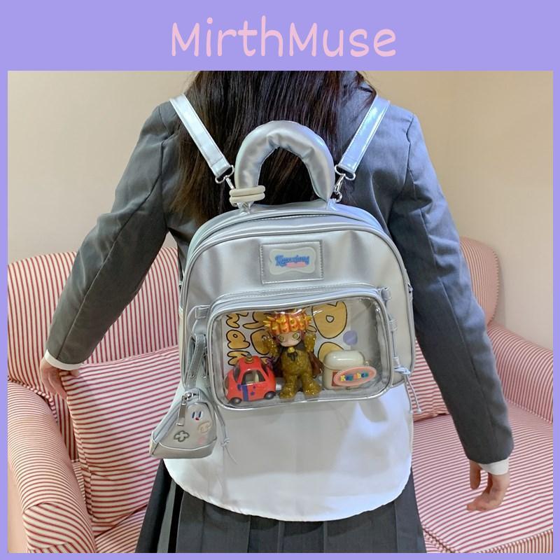 Backpack Cute Transparent Layer With Inner Zipper Pocket Pu Material School For