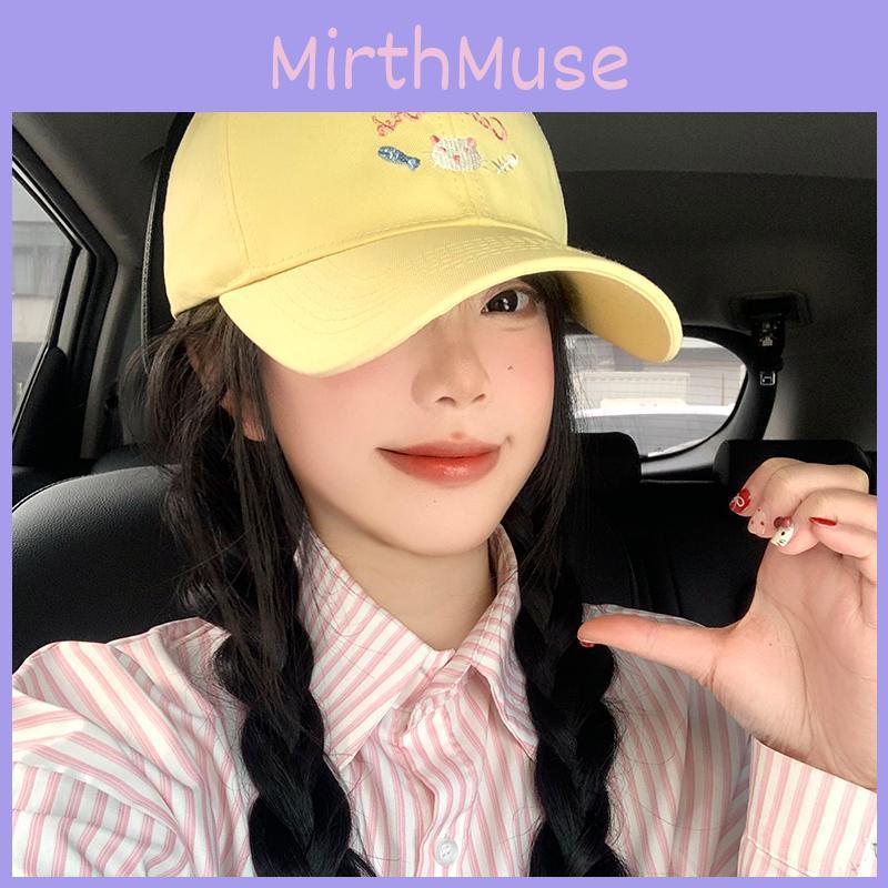 Cute Cat Fashion Embroidery Baseball Cap Women In Soft Yellow Adjustable Size