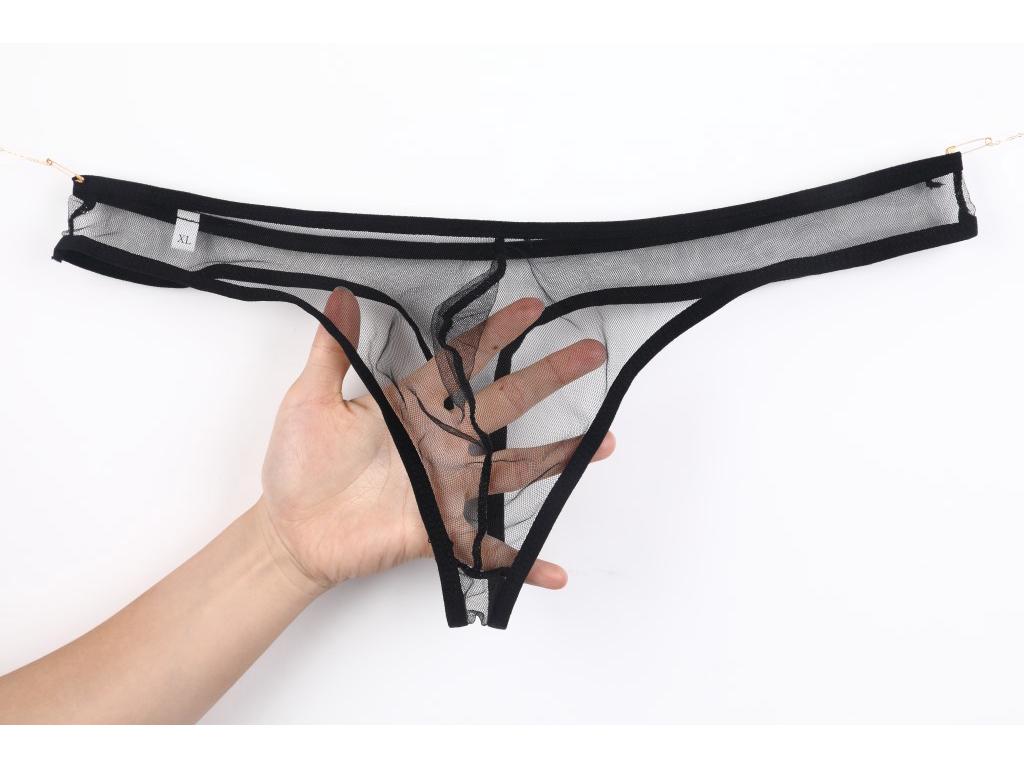 Men's See-Through Low-Rise Mesh T-Back Underwear - Plus Size C-035