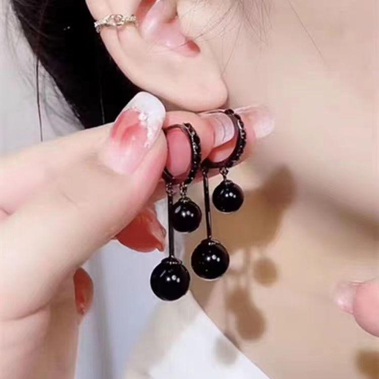 Elegant Tassel Earrings: Retro Black Ball Design, Versatile & Trendy for Women