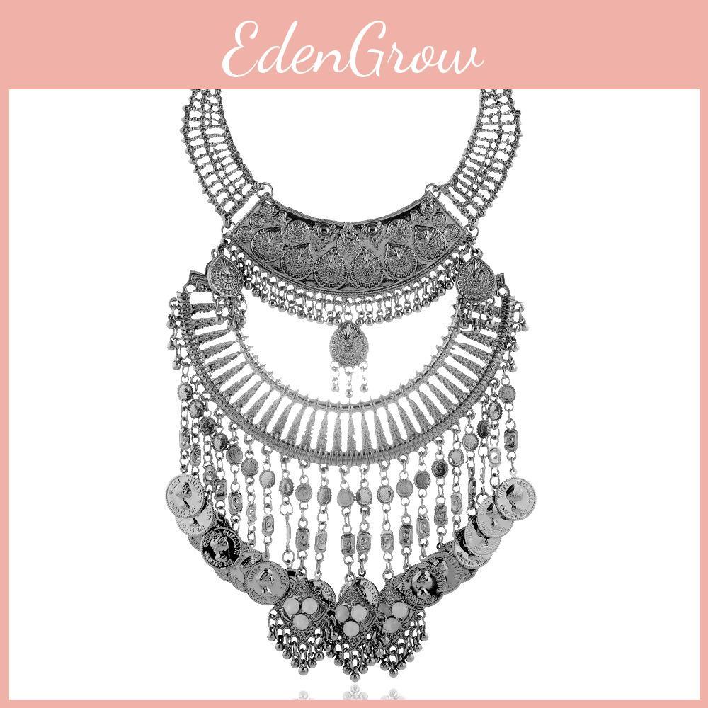 Coin Vintage Elegant Tassel Necklace With Alloy Material And Water Wave Chain