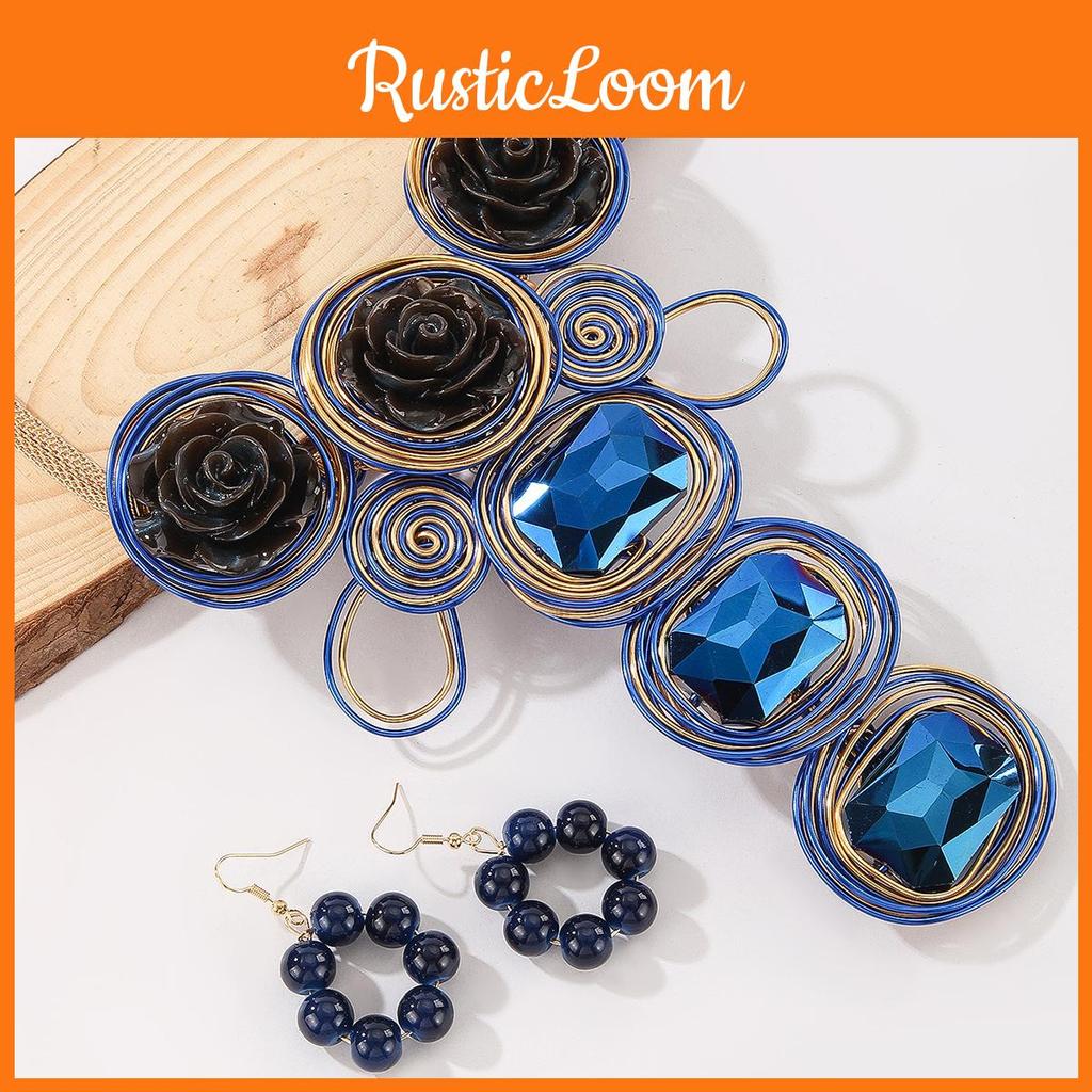 Geometric Chic Women Pendant And Earrings Set With Crystal And Flowers Resin