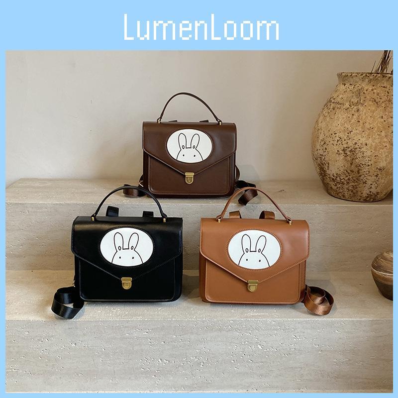 Childrens Backpack Minimalist With Leather Material And Rabbit Design Print