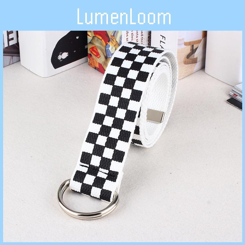 Printed Canvas Grid Belt And Double Loop Buckle Made Of Nylon Material Woven