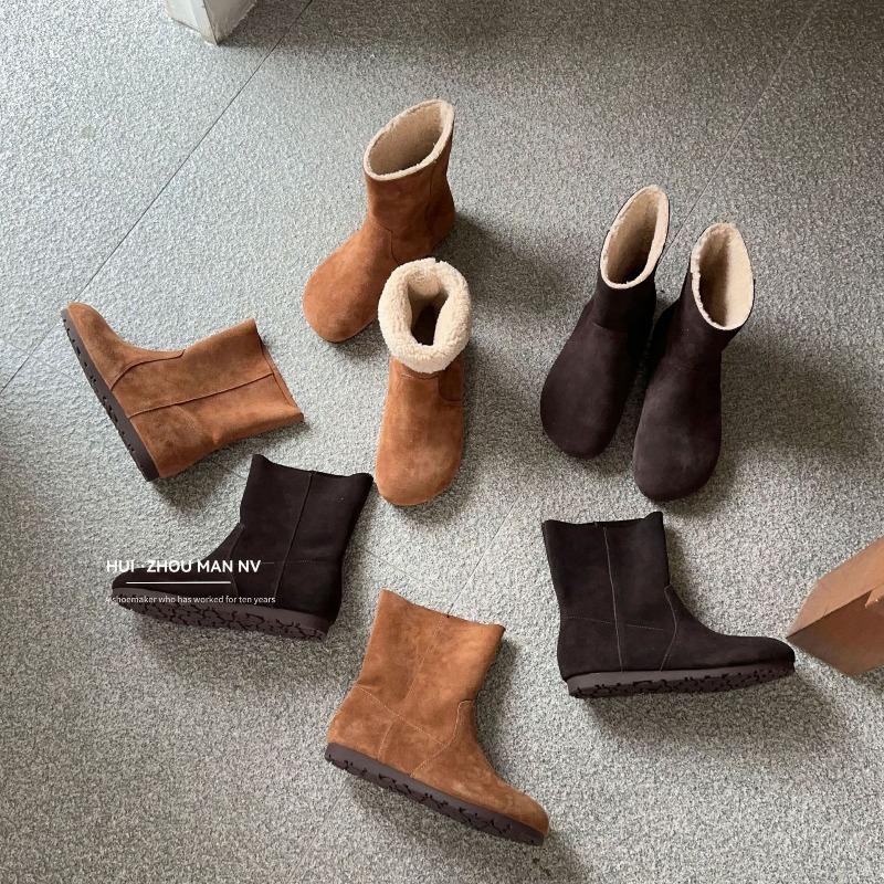 Inner Height Increase Velvet Boken Boots Leather Short Boots Women's New Retro Warm One-pedal Short Snow Boots