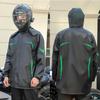 This motorcycle raincoat and pants set is designed specifically for male riders seeking ultimate protection during wet weather conditions. Featuring a split type design, the set ensures ease of movement and comfort while riding. The stormproof material offers excellent water resistance, keeping you dry and comfortable in heavy rain. The set is crafted with durability in mind, using high-quality materials that withstand the rigors of motorcycle travel. With its practical and stylish design, this gear is an essential addition to any rider's wardrobe for safe and comfortable journeys in inclement weather.