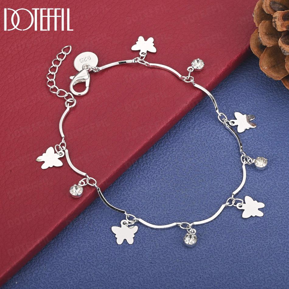 925 Sterling Silver Butterfly AAA Zircon Bracelet Fashion Wedding Jewelry