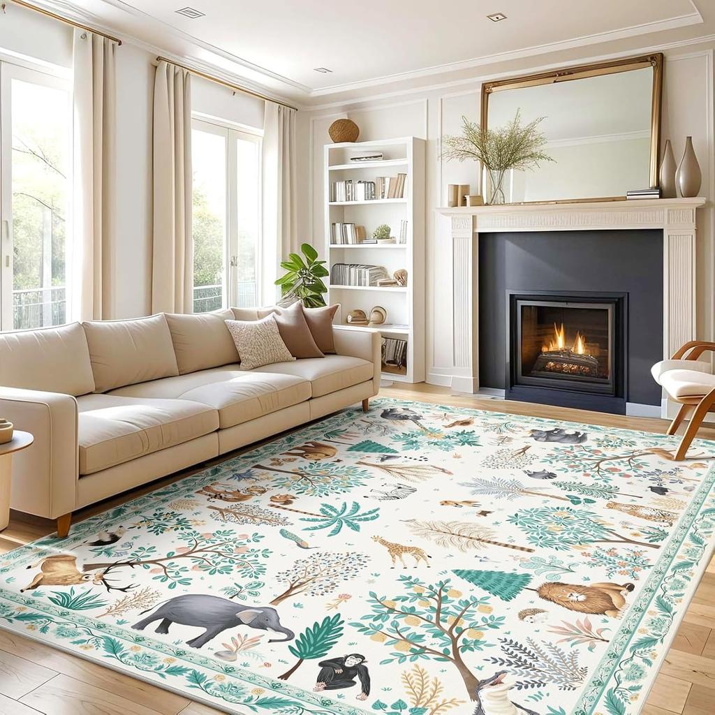 Living Room Carpet Forest Animal Carpets Large Machine Washable Non-slip Floor Mat Home Decoration Rug for Bedroom Bedside Rugs