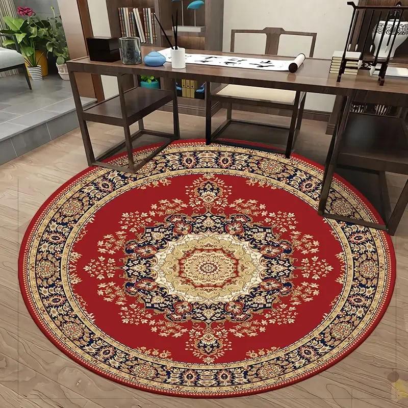 European Retro Chinese Round Carpet Living Room Tea Table Mat Computer Chair Cushion Home Decoration Non-slip Soft Fluffy Rug