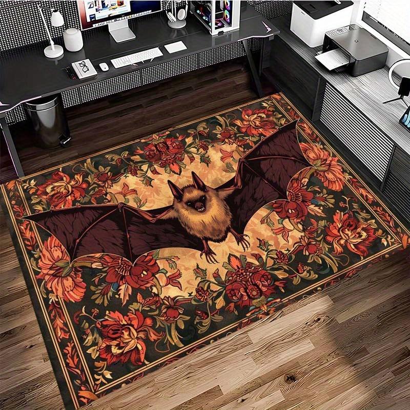 Gothic Floral Bat Print Rug - Home Decor, Large Area Non-Slip Carpet for Living Room, Bedroom, Office, Bathroom, Door Mat