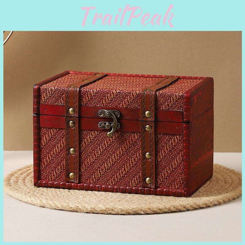 Car Wooden Storage Organizer Lockable Medicine Box With Retro Woven Password