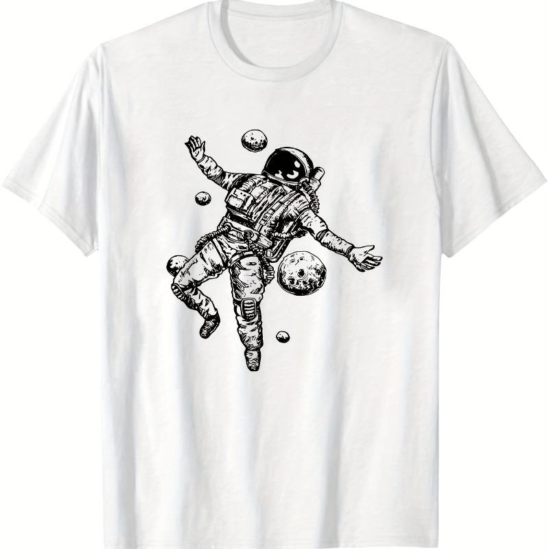 Floating Astronaut Space Graphic Print T-Shirt Breathable Cool, Comfortable Wear,Daily Casua