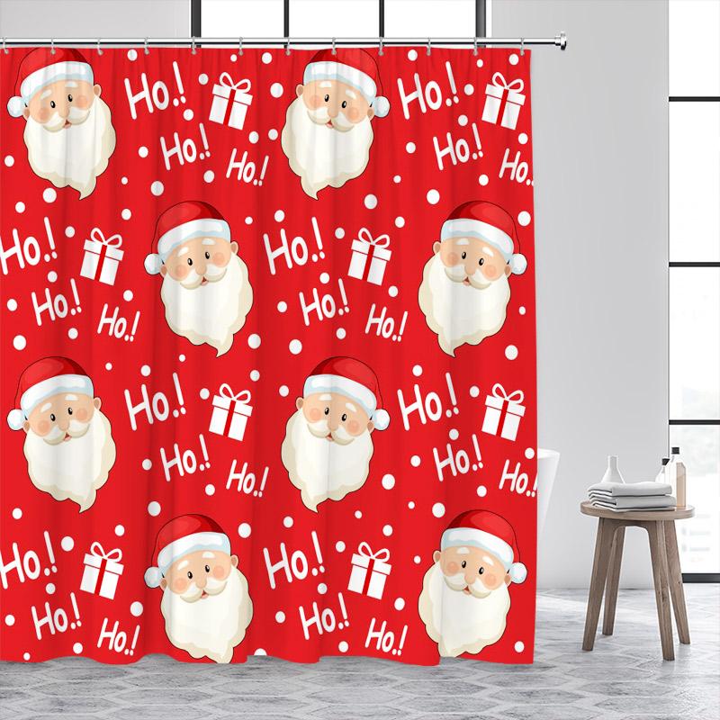 Cartoon Santa Claus Shower Curtains Xmas Gift Red Christmas Bath Curtain Set Polyester Fabric Bathroom Decor Washable With Hooks