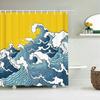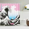 Japanese-Style Waves Printing Shower Curtain With Hooks Home Decoration Bathroom Curtains 180X180Cm Waterproof Polyester Fabric
