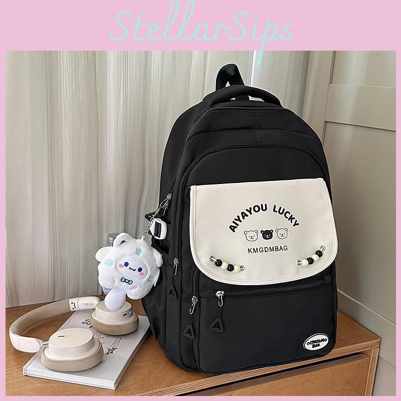 Bear Letter Fashion Print Bead Decoration Student Backpack With Plush Pendant