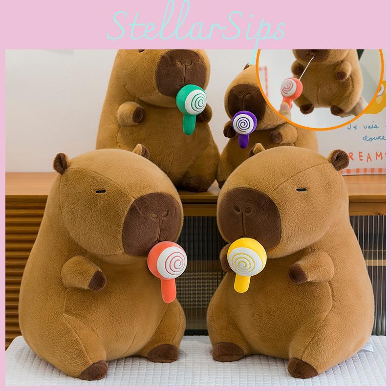 Soft Capybara Plush Doll Toy Animal Shaped Stuffed With Drawable Lollipop
