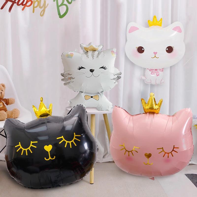 Wind Crown Cat Aluminum Film Balloon Animal Cartoon Baby First Birthday Decoration Party Arrangement Photo Balloon