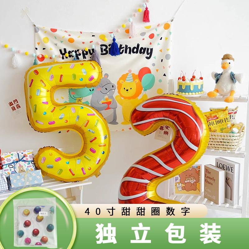 40 Inch Donut Birthday Digital Aluminum Film Balloon Children'S Baby Year Old Arrangement Food Cartoon Dopamine Party