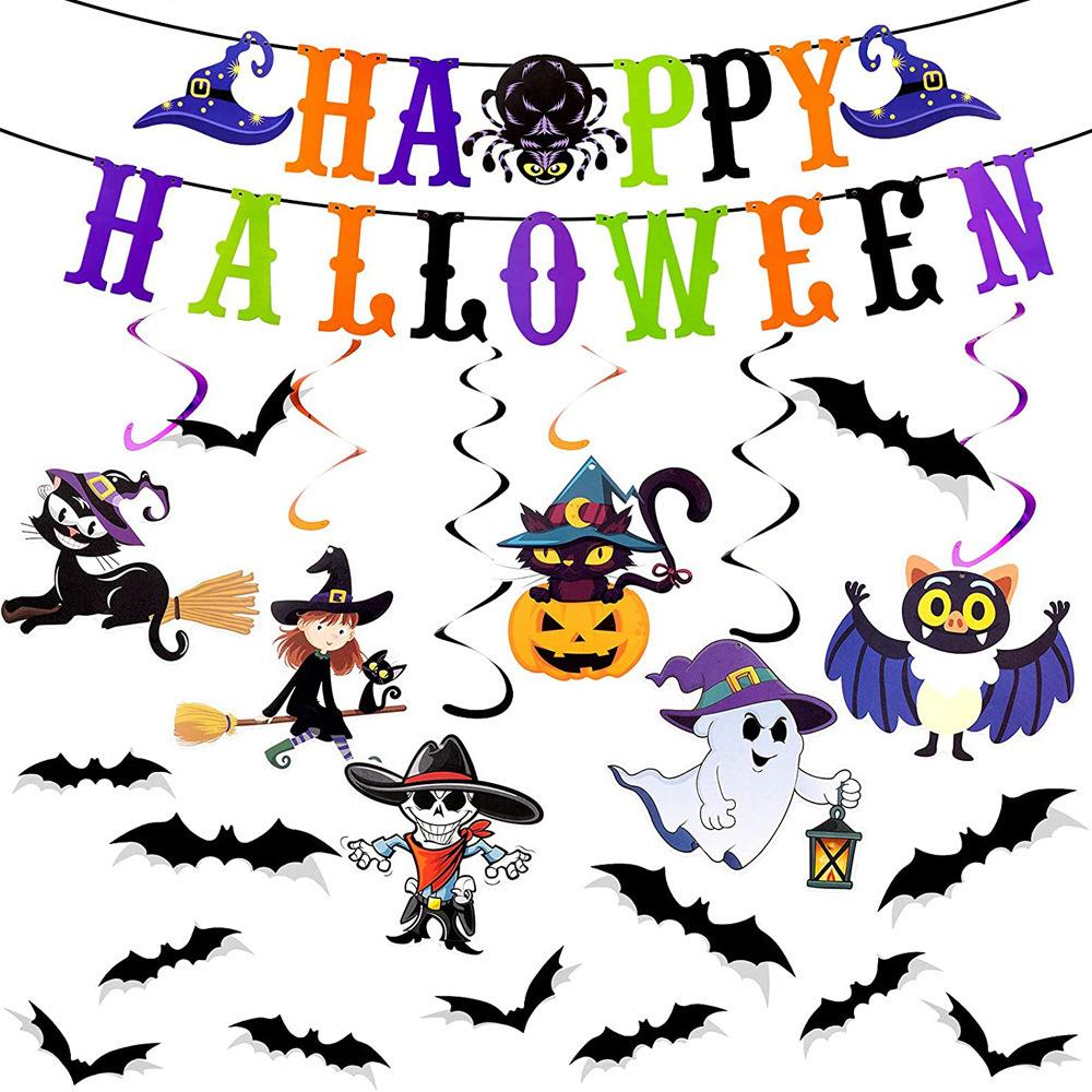 Happy Halloween Alphabet Flag Pumpkin Witch Black Cat Spiral Pendant Bat Sticker Set