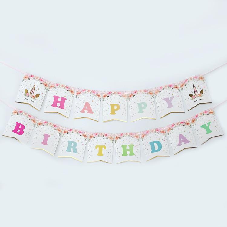 Unicorn Birthday Flag Happy Birthday Letter Bronzing Glitter Birthday Banner Customization